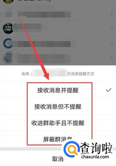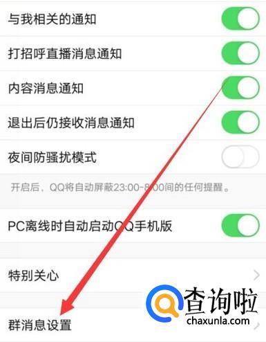 进入之后,点击一个群,即可对群消息进行设置,如图所示。
