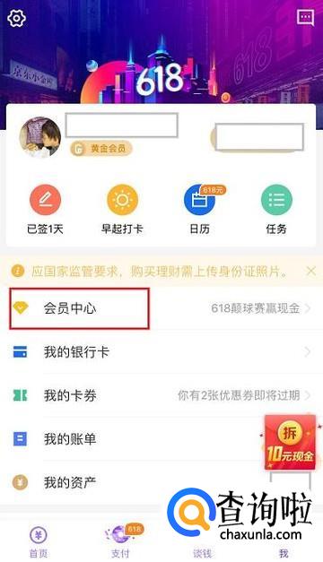 在个人主页中,点击进入“会员中心”,即可查看自己京东账号的会员等级以及会员信息等。