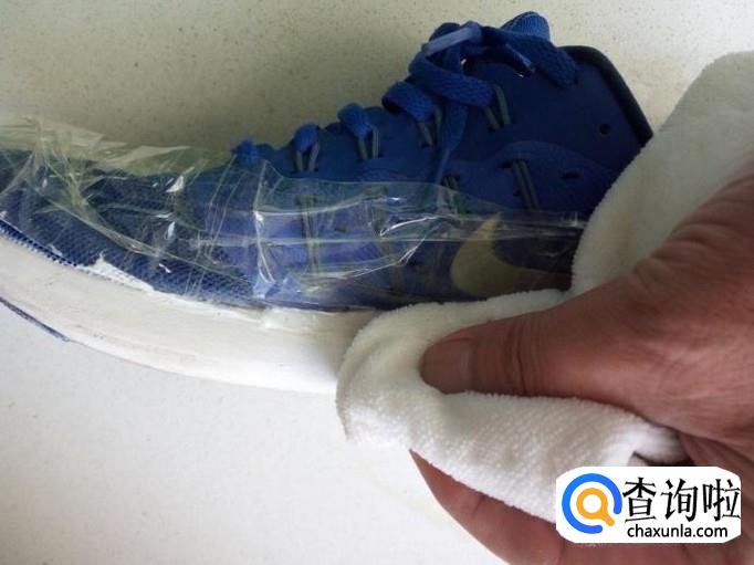 刷洗干净后,用抹布把鞋边上的牙膏沫擦拭干净(不要有牙膏沫的残留,反复投洗抹布擦拭),然后再用干净的软纸,把鞋边擦拭干净。