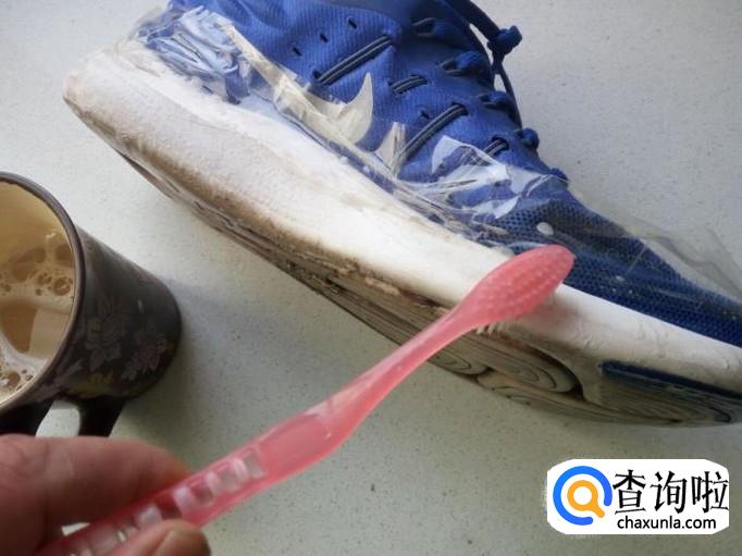 把牙膏挤在鞋边上(最好是增白之类的牙膏),用牙刷把牙膏均匀的涂抹在鞋边上,然后用牙刷蘸点水反复在鞋边上刷洗。污渍比较严重,不容刷洗掉的地方,就再挤些牙膏刷洗一下。