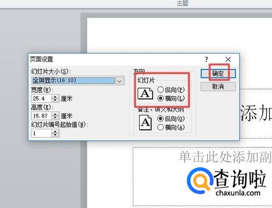 之后,横版和竖版的话,我们可以看到方向中的横向竖向,这个就是横版和竖版的设置,我们根据我们的需求设置就可以了,最后我们需要记住点击确定,这样我们就设置好了。