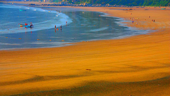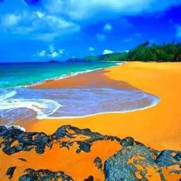 橙色是由于沙子里含铁量高,但却又没有火山岩中颜色较暗的沙子来中和。日落黄昏之时,明媚的橙色沙滩在夕阳余晖下越发鲜艳,握一把沙子,仿佛是把阳光握在手里。