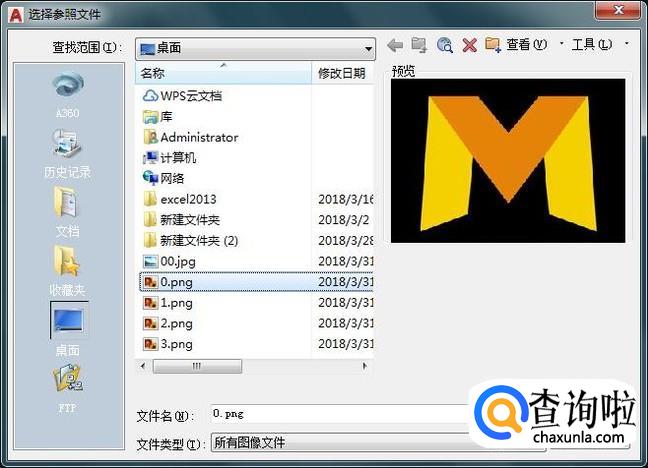 点击光栅图像参照选项在弹出的对话框内选择需要的图片,如图所示: