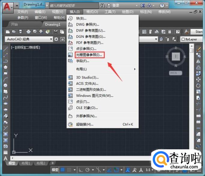 点击插入选项在其下拉菜单那里找到光栅图形参照选项,如图所示:
