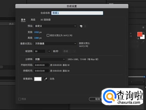 进入Adobe effect软件界面,新建一个合成,合成设置帧速率为30f。
