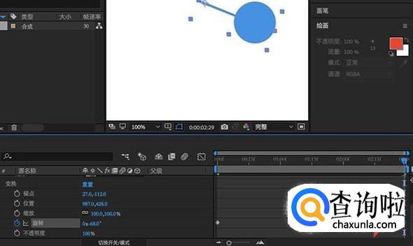 接下来开始设置动效,在开始的位置打上关键帧,将旋转角度数值往左进行设置。