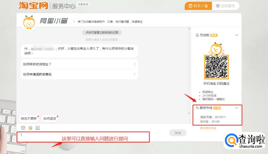 在页面最下方,有一个输入框,可根据自己的疑问进行输入,如果有相同的疑问解决案列,机器人会自动提取相应信息超链接发在此窗口内。页面右下角还有联系客服电话,也可以直接致电进行咨询。