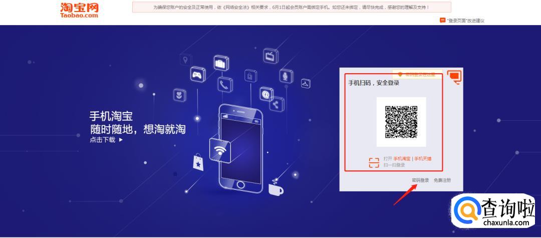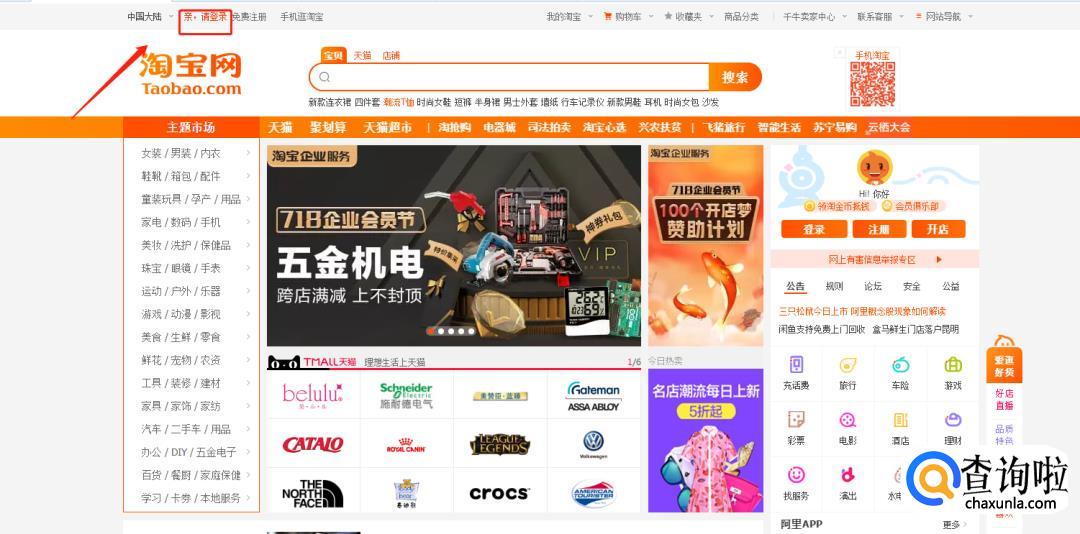 搜索引擎搜索“淘宝网”,进入淘宝主页,在页面最上方点击【亲,请登录】,如图一,进入登录页面,然后输入用户名与密码,点击【登录】,或者打开手机app,扫描二维码登录。