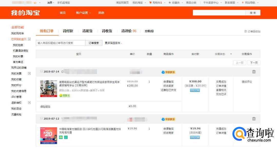 登录成功后,找到浏览器顶部的“我的淘宝”菜单栏,点击进入【已买到的宝贝】页面,这一步就进入买家个人中心,你将会看到你之前购买过的商品明细。