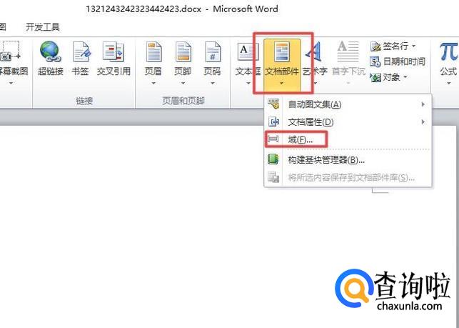 然后我们点击工具栏中的文档部件,弹出的界面,我们点击域;