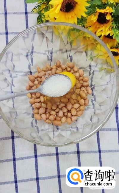 再加入适量白砂糖,这个量可以根据花生的量进行适当的增减。