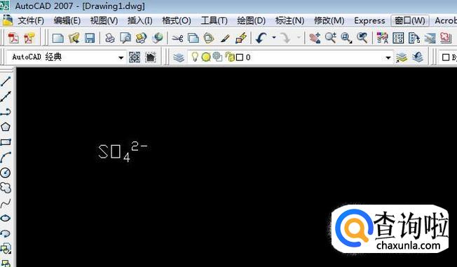 假设我需要输入硫酸根离子的分子式。点击页面左侧工具栏里的“A”图标(多行文字命令),在图中指定输入范围后,即出现文字输入框和“文字格式”工具栏。