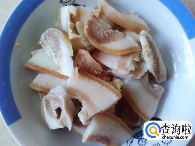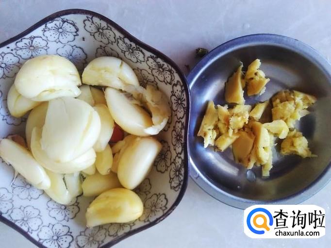 猪头皮是买卤过的,把猪头皮切成薄片,蒜米、姜蓉准备好。