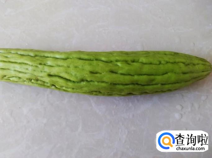 首先把苦瓜清洗干净,然后切开去籽,再侧刀切成一块块。