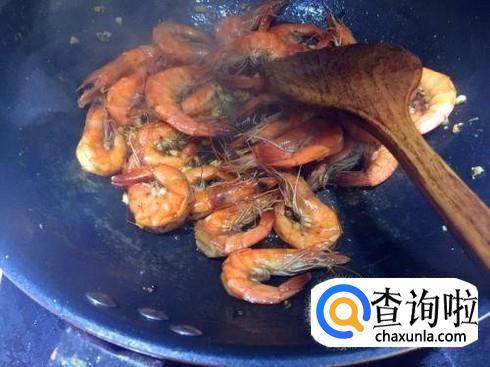 锅里到油烧热,放入生姜片和葱段炸香,把生姜片和葱段捞出来,把基围虾放进去小火慢慢的炸。