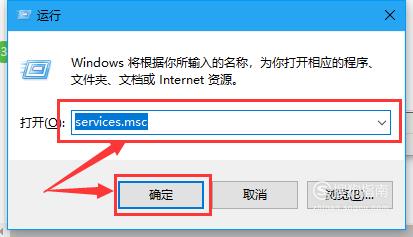 打开“运行”对话框,在“打开”后的文本框中输入“services.msc”,单击“确定”按钮,如下图所示。