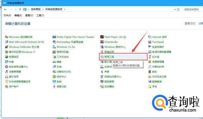 在控制面板中找到“管理工具”。