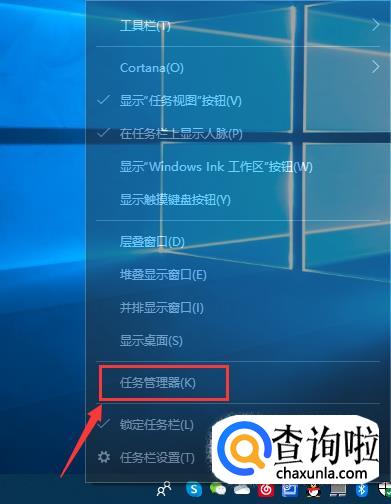 在任务栏上右击,在弹出的快捷菜单中单击“任务管理器”命令,如下图所示。