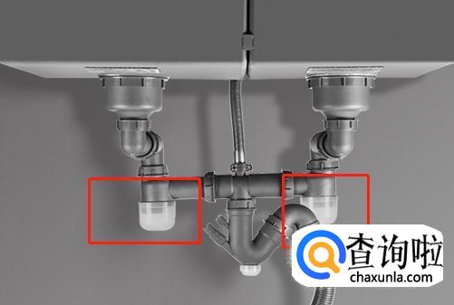 拆开以后,我们再将下面这两个弯道的节水斗一起卸下来。