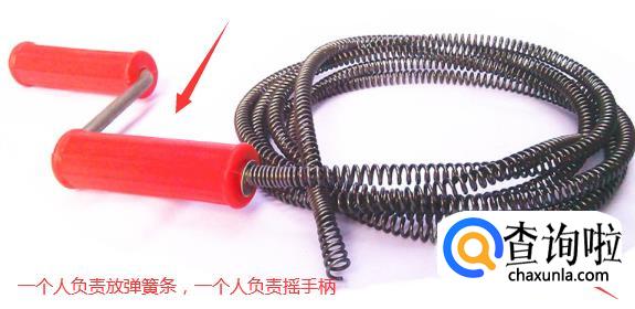 完全地把疏通器的弹簧部分插入管道中以后,继续摇动疏通器上面的手柄,多摇一会儿,确保管道里面的堵塞物都被打碎。
