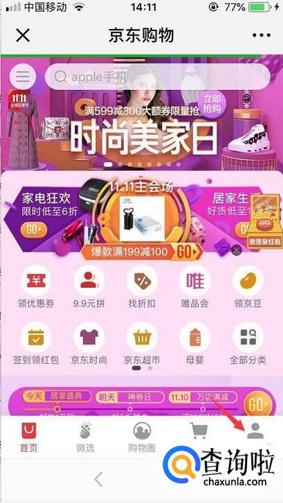 进入到京东的页面后就点击右下角的个人中心。