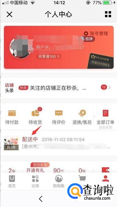 然后在个人中心里面就会看到订单的派送信息。