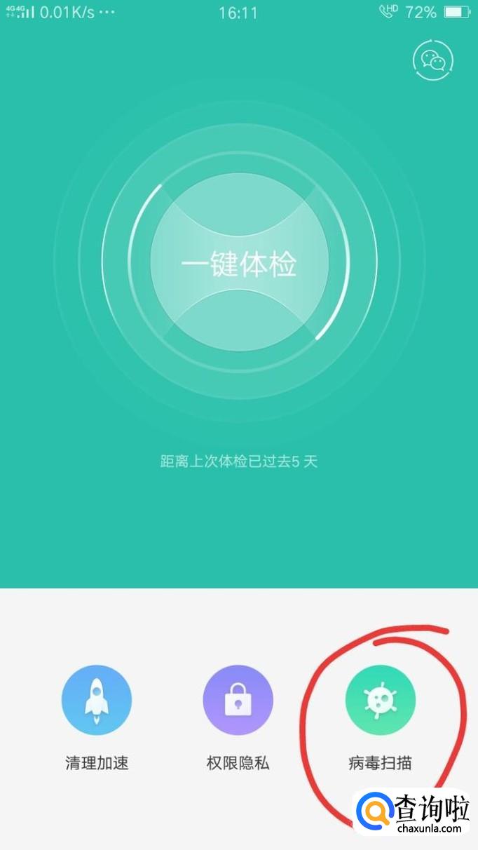点击“病毒扫描”进行杀毒即可。