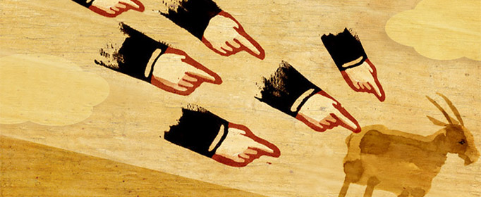 “替罪羊”一词是舶来品。对应英文有scapegoat、whipping boy。《旧约》中记载说,上帝为了试探亚伯拉罕是否虔诚,就叫他杀掉儿子献给上帝。亚伯拉罕虽然心痛,但更忠于上帝,所以就将自己的儿子绑了准备祭献。这时,一位天使出现了,对他说:“上帝知道你的虔诚,前面林子里有只羊,你用它来祭献吧。”于是,亚伯拉罕就用羊代替儿子行了献祭礼。在基督教文化中,犹太新年过后的第十天是“赎罪日”,古犹太人会在这天举行祭祀。通常会选取两只公羊,宰杀一只公羊做贡献;另一只由大祭司手覆其额头,将犹太人一年的罪过宣读,意味着这只羊承受了犹太人犯下的所有罪过。然后将羊放逐旷野赎罪,最后将赎罪羊火祭。“替罪羊”一词便由此产生。后来,人们便把那些代别人受过的人称为“替罪羊”。
