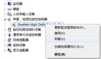 如果是声卡驱动不兼容,我们可以在设备管理器里把原来的声卡驱动卸载。