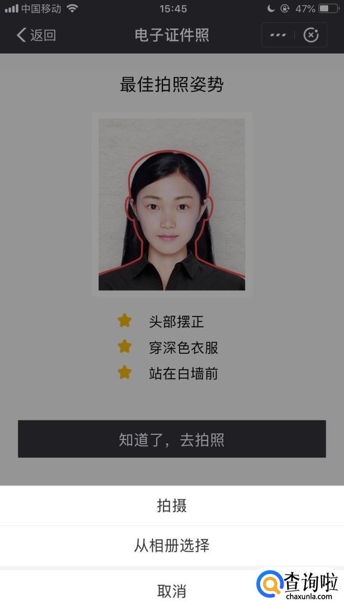 然后点击知道了去拍照,如下图所示。