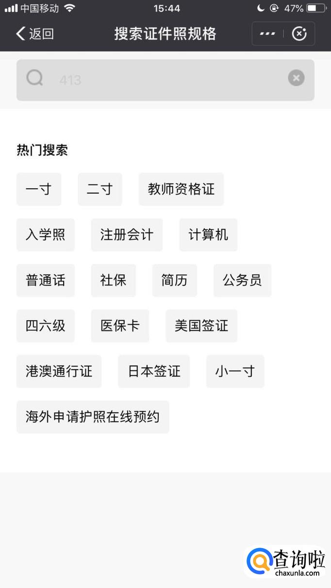 然后选择你要的证件照类型,如下图所示。
