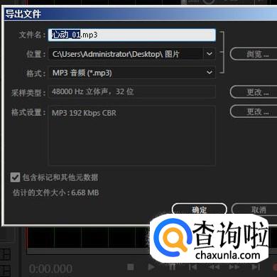 在导出文件的对话框中,我们设置好保存此音频的位置,以及保存格式。再点确定。那么,此音频就导出成功了。