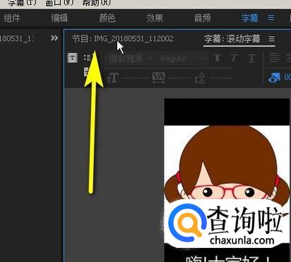 滚动字幕制作好,接着,如图所示,点击节目;返回到节目面板。