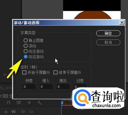 弹出设置滚动字幕对话框;在字幕类型这里选择其中一种字幕滚动的类型。
