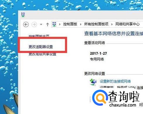 之后,我们在屏幕左侧找到更改适配器设置,双击打开。