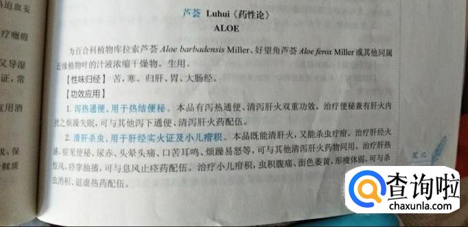 芦荟,即库拉索芦荟,好望角芦荟或者其他同属近缘植物叶的汁液浓缩干燥物,生用
