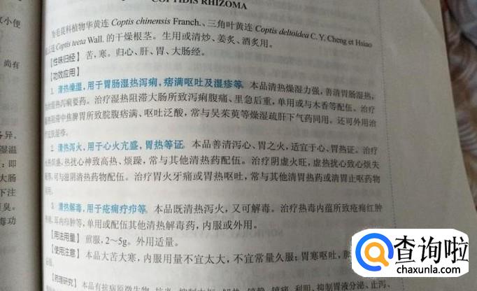 黄连,治疗湿热阻滞大肠所致泻痢腹痛,里急后重