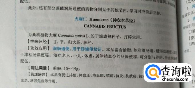 火麻仁,润肠通便,用于肠燥便秘证