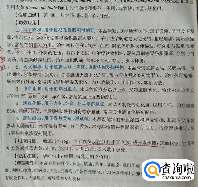 大黄,大黄宜生用,不宜久煎,或者开水泡服