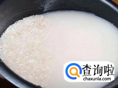 打开电饭煲盖,把准备好的大米放入电饭煲内,加入适量水,这里所用的水量一般比放进去的大米位置高处两指就正好。