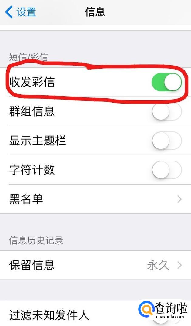 找到收发彩信那一栏,如图中一样变绿就是打开了,然后就可以顺利接收彩信