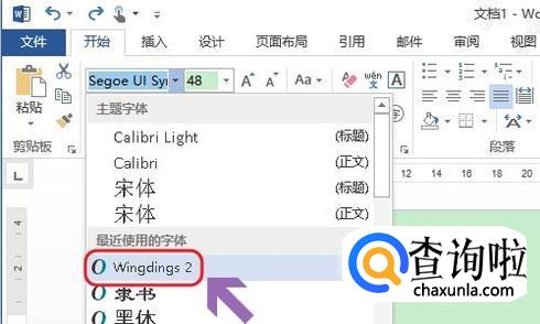 接着选中该字母,再在上方的左上角的字体中选择“Wingdings 2”,然后刚才的字母R就变成了下图三我们需要的符号了;
