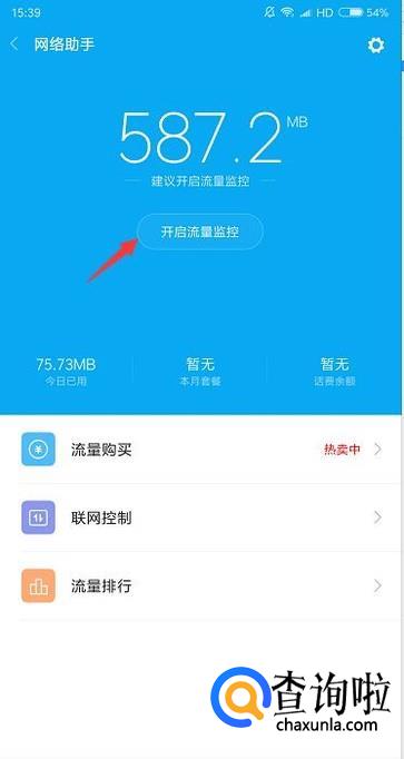 在设置里面进入到网络助手,开启流量监控。