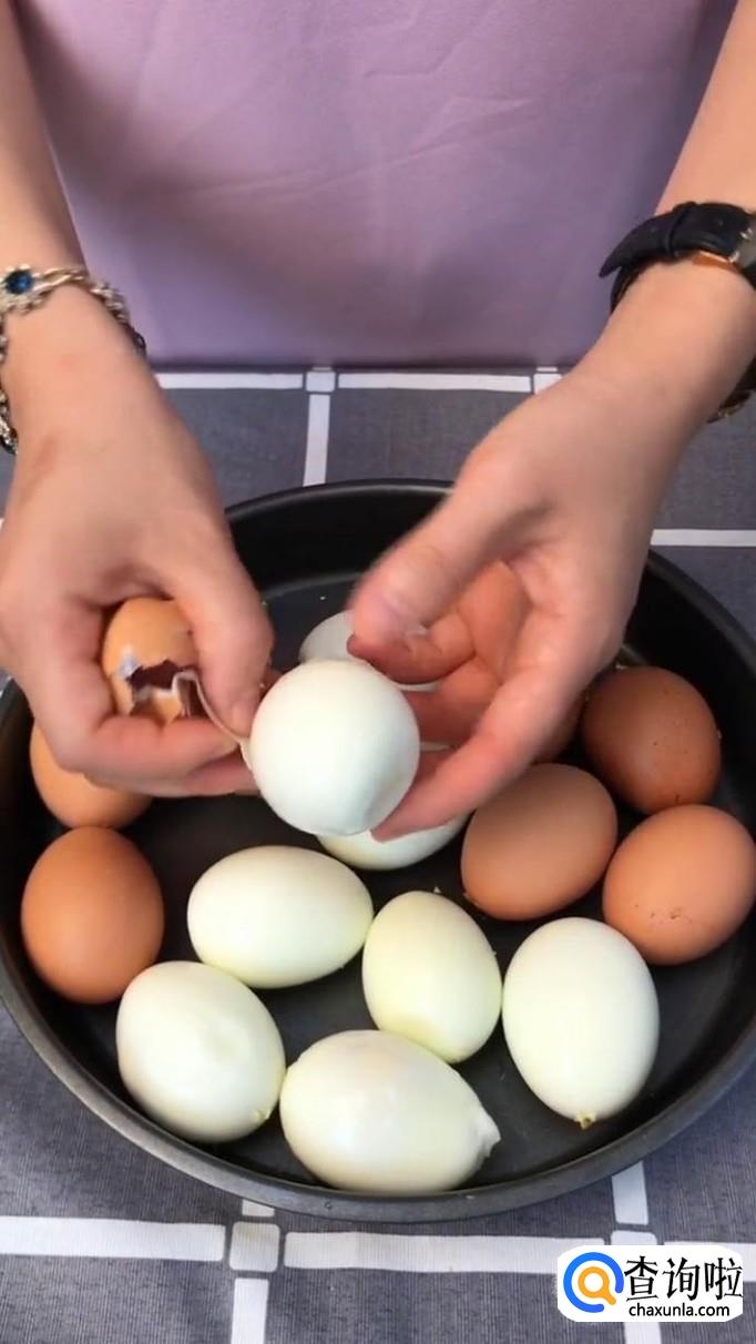 然后在剥好的鸡蛋上打上花刀,如下图所示。