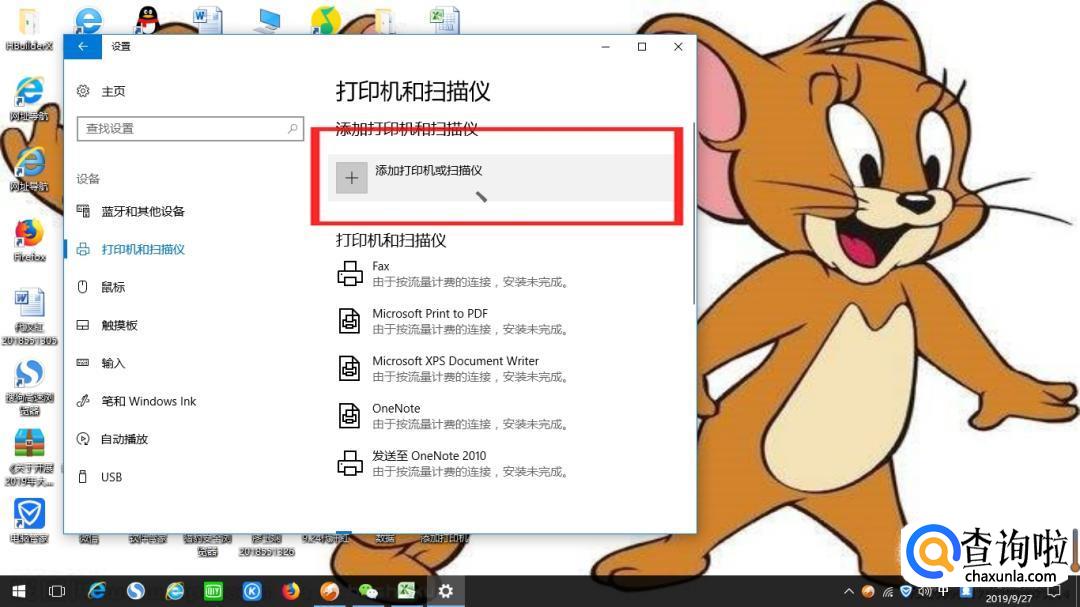 有可能会出现页面所示的情况,点击“添加打印机或扫描仪”就可以了。