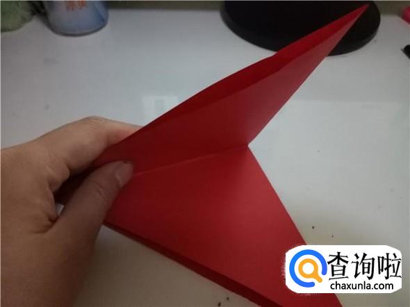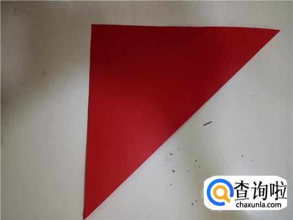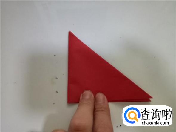 再将折纸对折一次,折出小三角,如图所示。