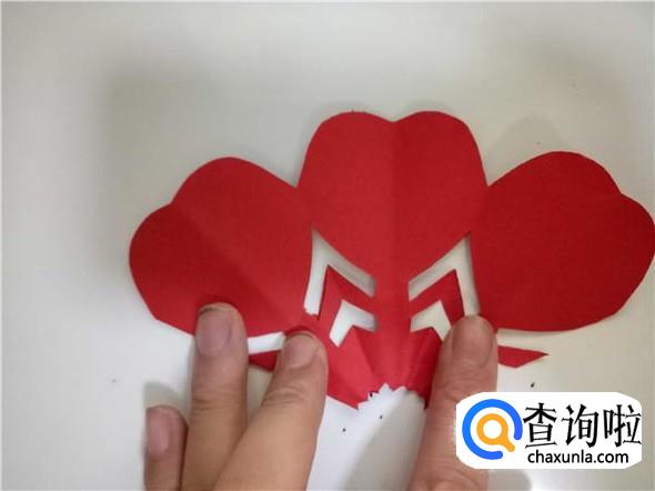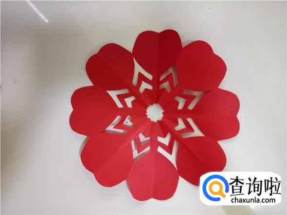 将折纸一层一层的打开,即可得到简单好看的心连心剪纸,如图所示。