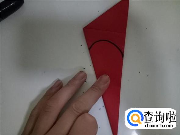 在折纸的上面画出一条弧形,需要将不整齐的地方都包括进去,如图所示。