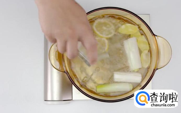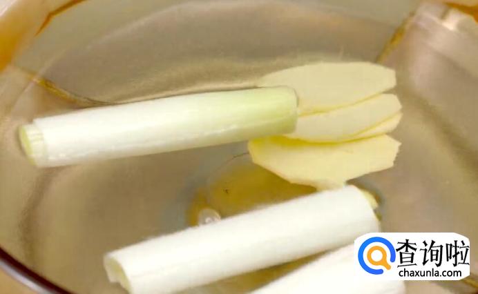 冷水放入葱姜,煮沸。