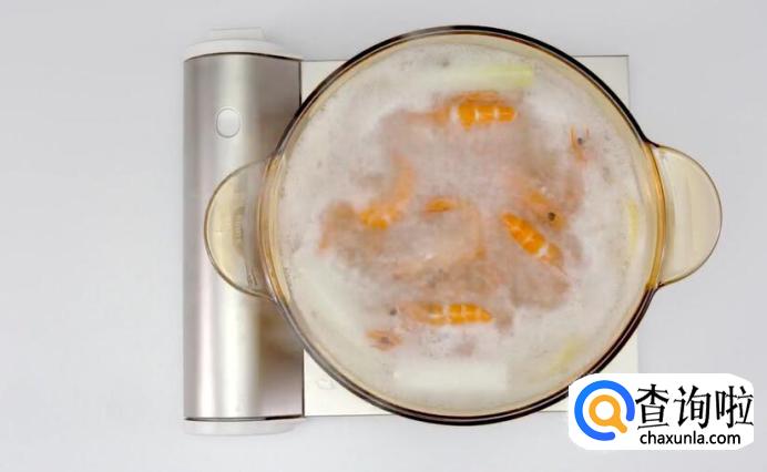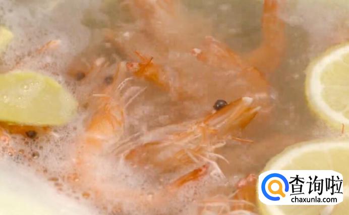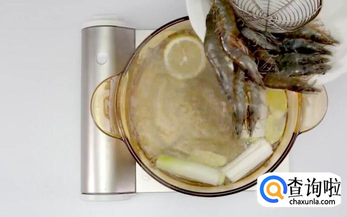 水再次煮沸后,放入虾。